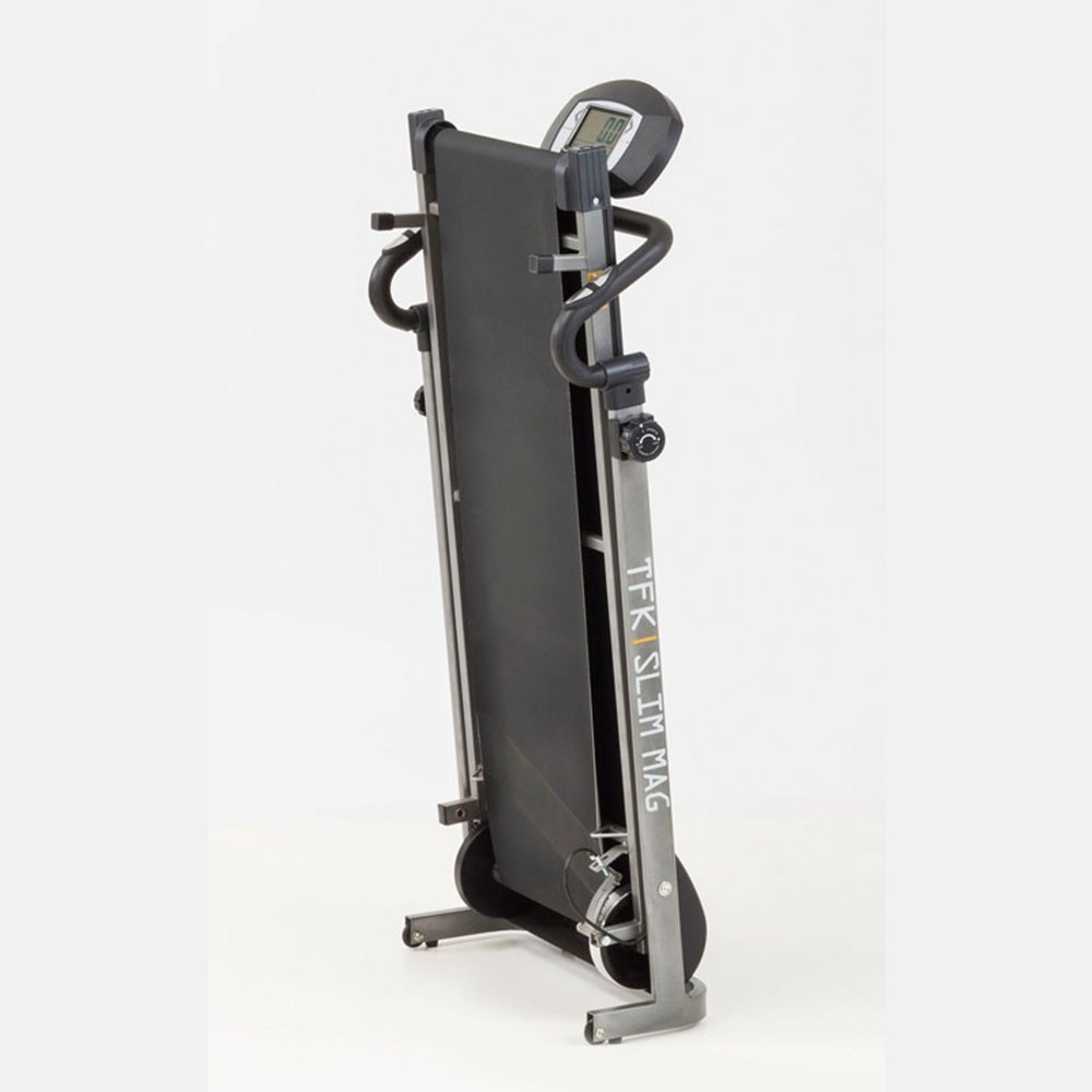 Bėgimo takelis Everfit TFK-SLIM-MAG, tai puikus modelis skirtas sportuoti namuose. Treniruoklis sulenkiamas, todėl itin kompaktiškas ir patogu laikyti mažesnėse patalpose. Treniruoklis turi 2 smagračius, kuri bendras svoris 6kg., tai užtikrina tolygų ir tylų bėgimo takelio veikimą.